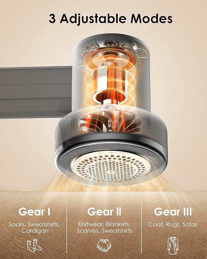 Our sweater lint remover comes with 3 speed settings (I/II/III). Firstly, this fabric lint pill shaver mesh cover has 3 sizes of holes, which can quickly clean up hair balls of different sizes.