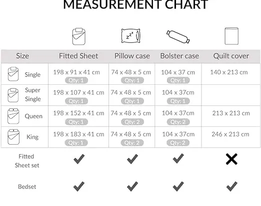 - ALL SIZES AVAILABLE: Includes King, Queen, Single, Super Single and Twin sizes. Universal Fit with full-length elastic, deep 16" pocket fitted sheet, duvet cover with hidden buttons closures and 6 inner ties to keep it in place. Pillow shams with envelope closure.