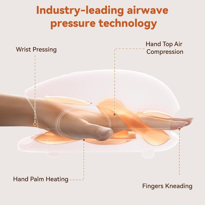 The upper and lower airbags work in harmony to gently massage your fingers, palms, and wrists. This improves blood flow, soothes stiff joints, and relieves hand fatigue, effectively addressing numbness and soreness.